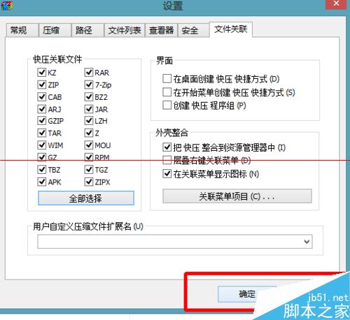 6、點擊下邊的確定就完成我們的設(shè)置,所有壓縮包都是快壓打開了