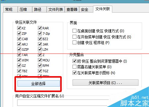 5、點擊下邊的全部選擇,上邊的壓縮包的格式全部選中了