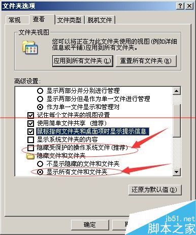 7、然后我們點工具---文件夾選項----按著圖中設置把隱藏受保護的操作系統文件前面對號去掉,然后把顯示所有文件和文件夾前面這個圈里面點上點。在確定就可以了。設置后我們剛才設置密碼為123456的文件夾中就顯示三個文件了。