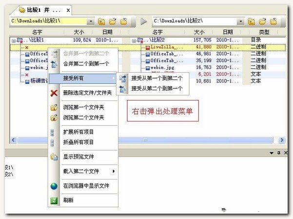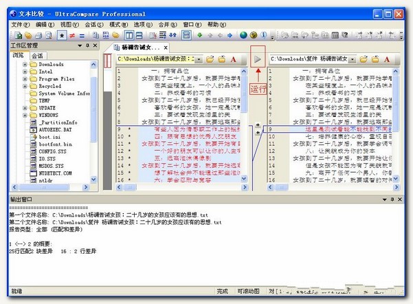 下面舉兩個例子來簡單說明一下文本比較和文件夾比較兩個功能。