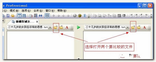 2、依次選擇打開需要比較的兩個文本文件: