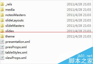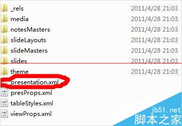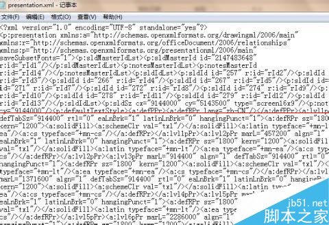 3、接著,打開解壓好的文件夾,進入到圖片提示的地方,用記事本打開Presentation.xml這個文件;