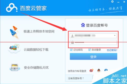 1、首先在電腦上打開【百度云管家】這款軟件,然后輸入自己的賬號和密碼進行登錄。如下圖所示。