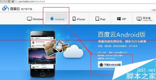 2、下載百度云客戶端手機版本。請根據你的手機選擇Android版本的客戶端,并安裝到你的手機中。