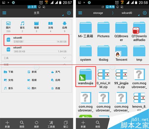 2、豌豆莢手機版默認保存的位置一般是SD卡中;如果沒有SD卡,那就是手機內存。只要打開SD卡/手機內存找到一個名為【 wandoujia 】的文件夾即可。