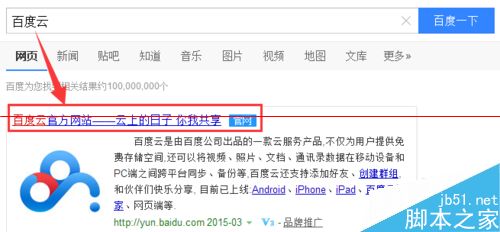 1、首先我們進入百度云網盤官方網站,在百度首頁搜索“百度云”,點擊第一個網站即可進入。