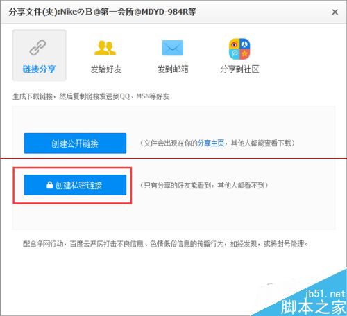 5、點擊分享之后,就出現了鏈接分享頁面,我們要設置提取碼,就要選擇“創建私密鏈接”,因為公開鏈接是不需要提取碼的。