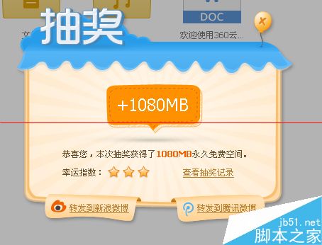 360云盤注冊默認初始空間為360GB,登陸pc客戶端送10TB,登陸手機客戶端送26TB,每日抽獎送500MB—7200MB,經常有送空間的活動。