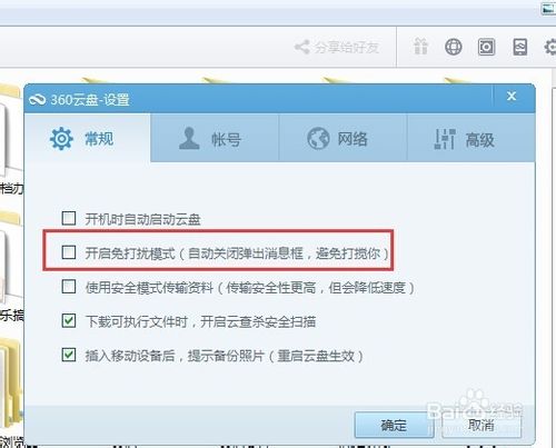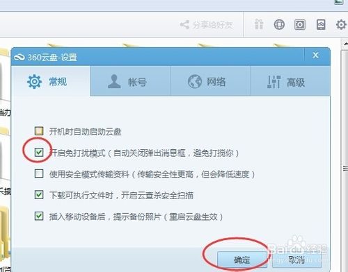 4、點擊確認保存,這樣360云盤再也不會自己跑出來打擾你了。
