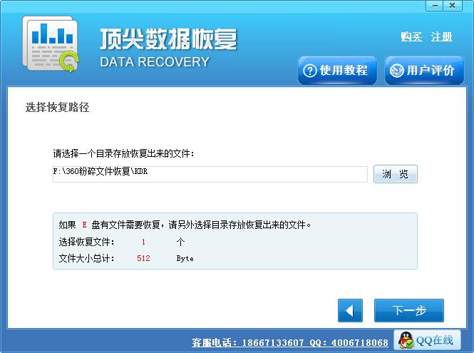 第五步:選擇一個盤存放需要恢復出來的文件,然后單擊下一步,靜待恢復完成。這里要提醒大家,存放恢復文件的盤不能與文件原來所在盤相同,必須存在不同的盤中,以免數據被覆蓋,影響恢復效果。