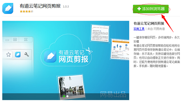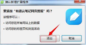 ③在彈出”有道云筆記網頁剪報“網頁對話框,點擊如下圖”添加到瀏覽器“。