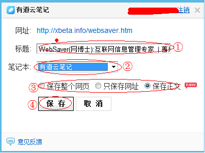 打開網頁,點擊收藏夾/書簽欄上的“收藏到有道云筆記”鏈接,選擇“只保存網址”,即可以將網頁地址保存到筆記中。