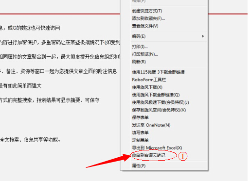 打開網頁,鼠標選中想保存的內容,點擊右鍵-收藏到有道云筆記。
