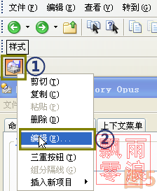 5. 在工具欄空白地方點擊右鍵并選擇“自定義”,然后右鍵點擊剛才建立的那個“驅動器按鈕”的圖標(①),選擇“編輯”(②),如圖5。