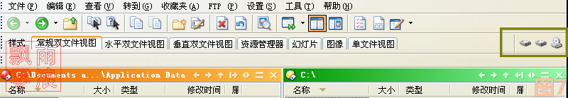 這時磁盤圖標右側出現了對應的盤符,我們可以很容易的進行磁盤切換了。Directory Opus的“驅動器按鈕”按鈕支持所有的磁盤,比如光驅、軟驅、優盤、網絡映射磁盤等,它會自動加入新添加的磁盤盤符,不需要我們再進行任何設置。