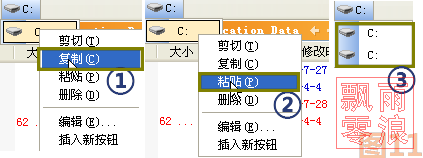 4. 左鍵點擊這個按鈕,在彈出的次級按鈕上點擊右鍵,選擇“復制”(①),如圖11。再次左鍵點擊次級按鈕,選擇“粘貼”(②),此時會出現兩個按鈕(③)。