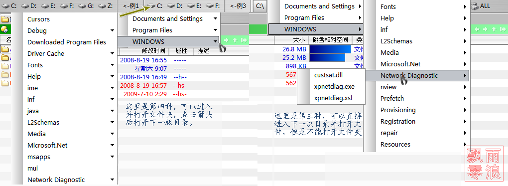 選中第四種作為主用DriverBar,然在這個DriverBar后面再建立一個菜單,把第三種中建立的彈出按鈕全部整合到這個菜單中。這樣在平時使用第三種進入目錄,而用最后一個快速遍歷目錄以及定位并打開文件。如下圖: