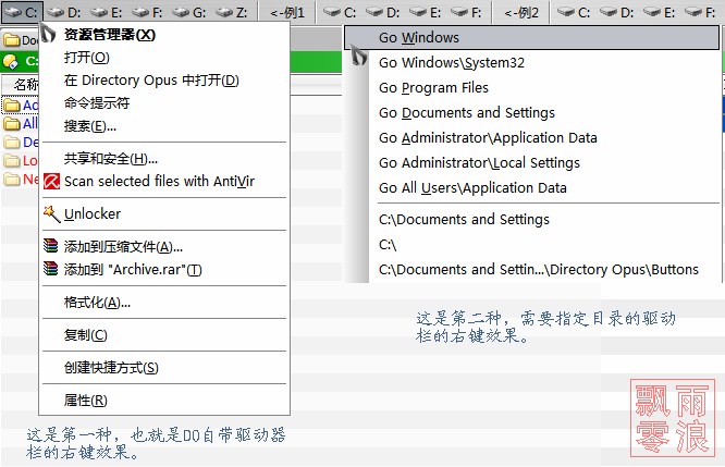 上面所啟用的是Directory Opus內置的驅動器工具(命令),只能定位到磁盤根目錄,沒法進入次級目錄。雖然已經很方便了,但還沒有達到理想的狀態,也不符合我們一直貫徹的DIY精神,因此我們應該更深入的挖掘Directory Opus的應用。