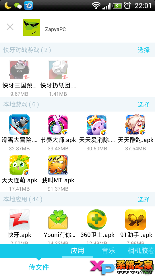 快牙手機端加入“快牙電腦版”連接成功后,用手機直接選擇文件發送即可。