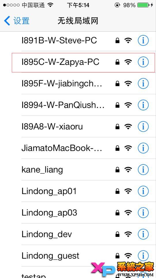 iOS系統手機用戶首先點開手機設置內“無線局域網”加入“快牙電腦版”創建的熱點