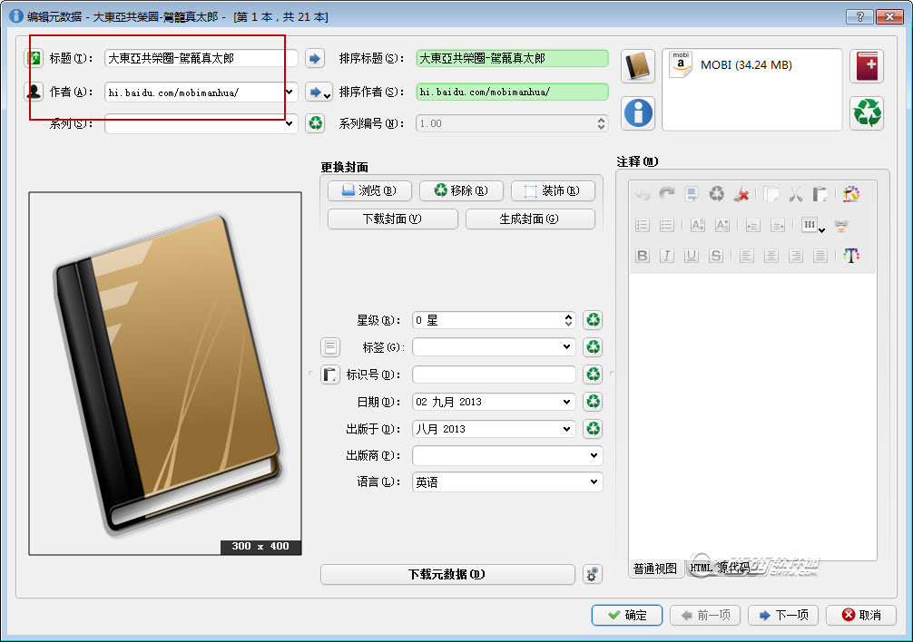 使用calibre修改mobi電子書元數據和作者的方法