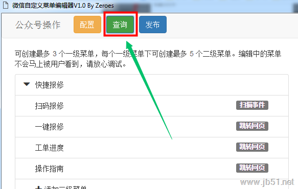 2、點擊查詢可以調用微信公眾號的查詢菜單