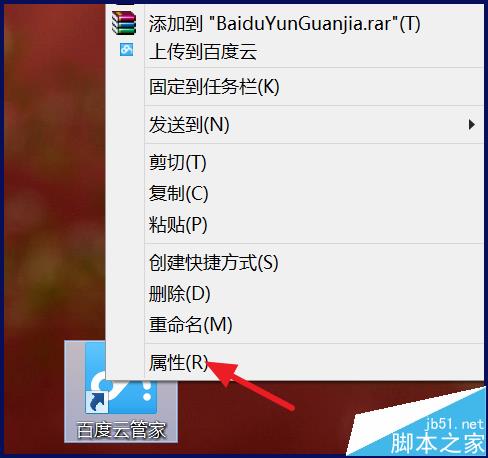 1、右擊百度云管家的快捷方式,選擇【屬性】