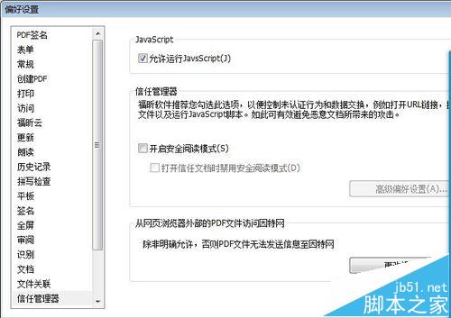 2、如果是Ribbon模式,點擊“文件”——“偏好設置”,選擇"信任管理器”,去掉”開啟安全閱讀模式“前面的款里的勾勾,然后再選擇”朗讀“,各項均打勾。