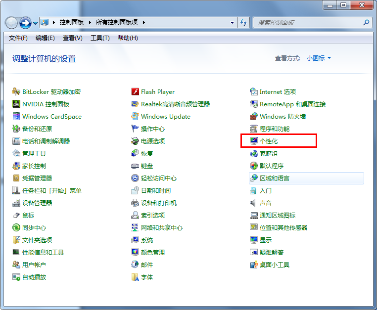 第一步:打開控制面板,然后點擊“個性化”
