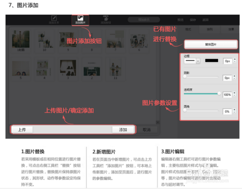7、添加多個圖片,為圖片出現設定狀態、形狀、動作等參數