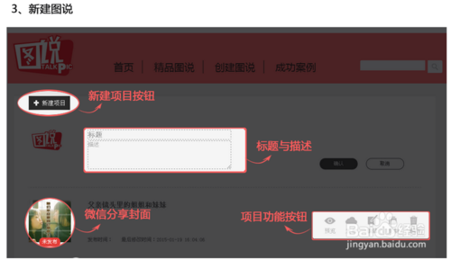 3、點擊新建項目,創建新的圖說項目,設置標題及描述,進入內容編輯