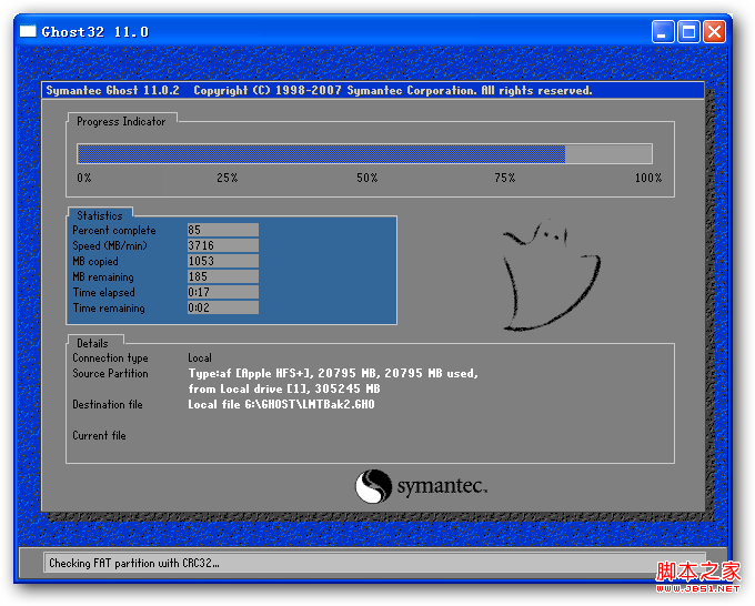 2、重新啟動(dòng)電腦后會(huì)自動(dòng)進(jìn)入蘿卜家園一鍵還原界面進(jìn)行自動(dòng)系統(tǒng)備份。