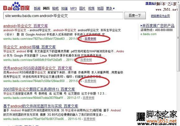 如搜索android+論文,輸入:site:wenku.baidu.com android+論文 (中間有空格)