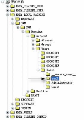在XP中,從控制面板的用戶帳戶,和計算機管理中的本里用戶和組的用戶,以及從注冊表中的KEY_LOCAL_MACHINE/SAM/SAM/Domains/account/Users/Names下看到的用戶的數量是有區別的。在控制面版中看到的是最少的,而在計算機管理中的本里用戶和組的用戶能看到一些隱藏的用戶,但是對于部分通過后門或者木馬添加的帳戶,在一般情況是是只能通過注冊表才能查看到的。