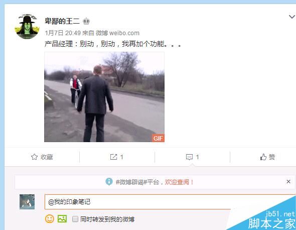 接下來就可以隨時@我的印象筆記,自己發微博可以@,轉發時可以@,評論時也可以@;每天的文章都會收藏在印象筆記中,點開有“新浪微博”分類,這里就是你收藏的文章了!