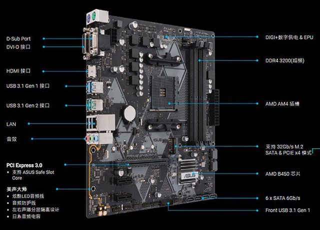 主板推薦的是華碩B450M-A ,一線品牌主流型號主板,配4根內存插槽、M.2 NVME全速接口、千兆網卡、USB 3.1等主流接口,完全可以滿足主流游戲玩家擴展需求。