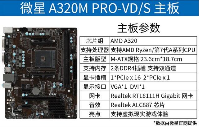 主板:微星A320M PRO-VD/S 主板套裝包含 ¥0