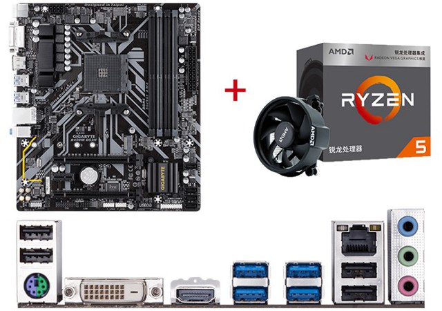 處理器:AMD銳龍5 2400G盒裝 搭 技嘉B450M-DS3H 主板套裝 ¥1469