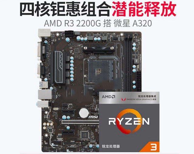 處理器:AMD Ryzen3 2200G 搭 微星A320M PRO-VD/S主板套裝 帶核顯 ¥979