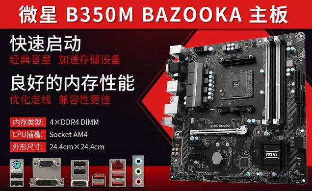 主板推薦的是微星B350M BAZOOK CPU主板套餐,在天貓商城結合R5 1600處理器套餐購買,僅1600元左右。微星B350M BAZOOK是一款主流級主板,做工用料扎實,支持超頻,提供4根內存插槽,并提供全速M.2接口,可以滿足高速SSD擴展需求。