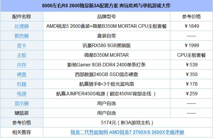在DIY電腦中,3A平臺(tái)很多朋友都不會(huì)陌生。所謂的3A,也就是AMD處理器、AMD顯卡、AMD主板組合,隨著AMD銳龍平臺(tái)的崛起,加之先進(jìn)的12nm制程的Ryzen 2代CPU上市,對(duì)于今后DIY裝機(jī)朋友來說,顯得頗有吸引力。下面小編就為大家?guī)硪惶識(shí)5 2600配RX588六核獨(dú)顯,并帶有輕度光污染的主機(jī)配置推薦,適合單機(jī)+主流3D游戲玩家考慮。