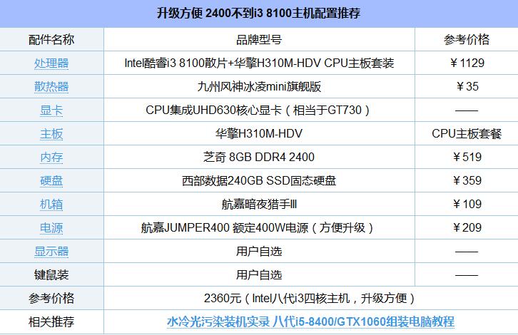 首先來看一套Intel平臺方案,這套配置方案主要亮點在于升級方便,以下是具體的主機配置單。