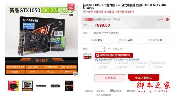 | 顯卡 | 技嘉GTX1050OC-2GD 雙風扇 | ¥798 |