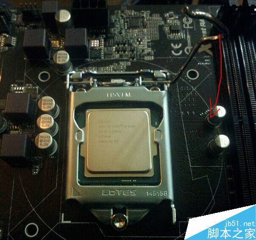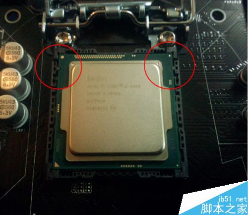 1、CPU拆開以后看看正反面是不是都完好。然后把主板上CPU位置的拉桿拉上來,然后把CPU上兩邊各一個的缺角對準主板上的突起的部分,輕輕放下去,千萬不要大力去按哦,容易把針弄彎弄斷之類的。LGA775之后,Intel開始采用這種針腳在主板上,CPU只留接觸點的作法,主要是為了避免CPU的針腳被損壞,因為CPU比較比較小塊。安好以后把拉桿拉下來扣好。