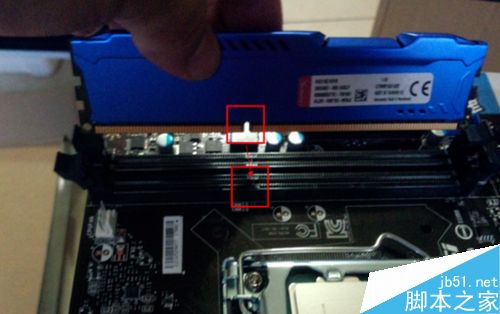 5、安裝內(nèi)存,注意內(nèi)存中間的那個卡槽的方向和主板上的內(nèi)存插槽相對應(yīng),不要硬來。