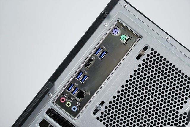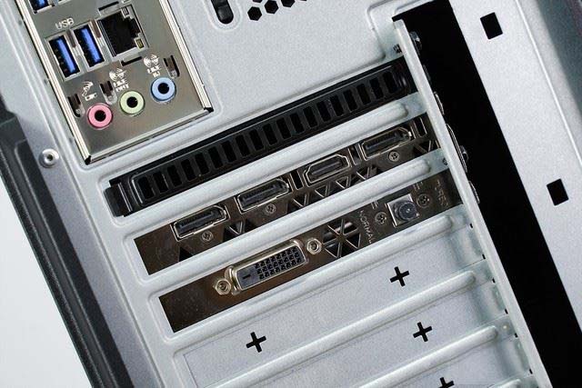 接口上,主板+顯卡的數量還是相當可觀的,比如包括六個USB 3.0、兩個PS/2鍵鼠接口、三個音頻接口,一個RJ-45網口,兩個HDMI、三個DP、一個DVI,接口數量和種類都能充分滿足玩家的接駁需求。