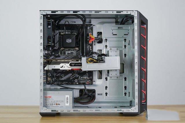 雷神Force T8Ti游戲主機內部是常見的主板側置、電源下置的結構,這種結構的維護成本相對低一些,對初次上手的朋友來說更容易操作,并且機箱還預留了充足的背板空間,走線更從容,看起來也很清爽。