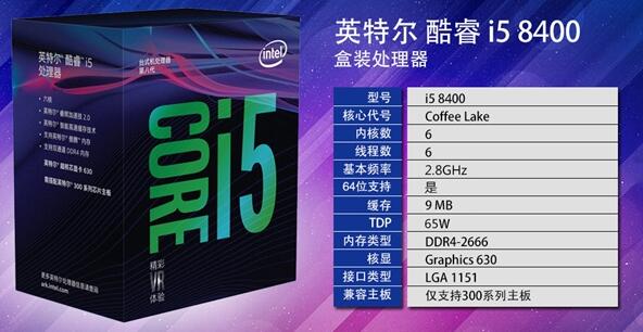 CPU方面選擇的是酷睿i5-8400,Core i5-8400則是6核6線程,基于Coffee Lake構架,14nm制造工藝,采用LGA1151接口,基礎頻率2.8GHz,僅支持300系列主板,L3緩存9MB,支持DDR4-2666內存,整合UHD 630核顯,TDP功耗65W。