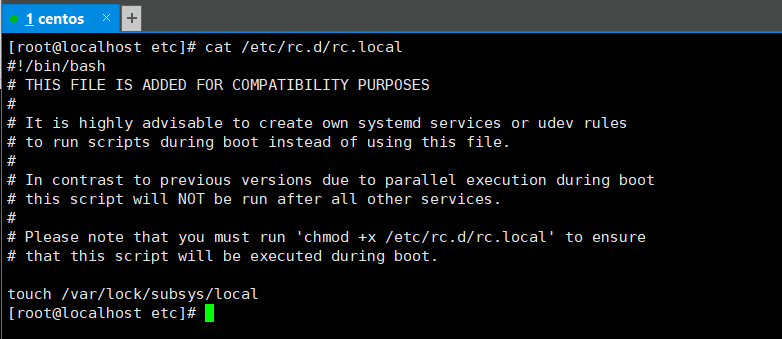 操作系統(tǒng)啟動(dòng)完相應(yīng)服務(wù)之后,會(huì)讀取執(zhí)行/etc/rc.d/rc.local文件,可以將需要開(kāi)機(jī)啟動(dòng)的任務(wù)加入到該文件末尾,系統(tǒng)會(huì)逐行去執(zhí)行并啟動(dòng)相應(yīng)命令。
