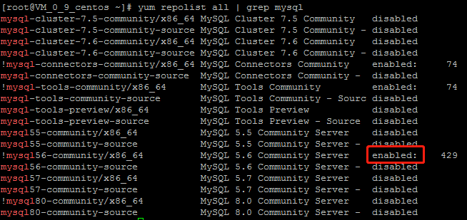 sudo yum-config-manager --disable mysql80-communitysudo yum-config-manager --disable mysql57-communitysudo yum-config-manager --enable mysql56-community